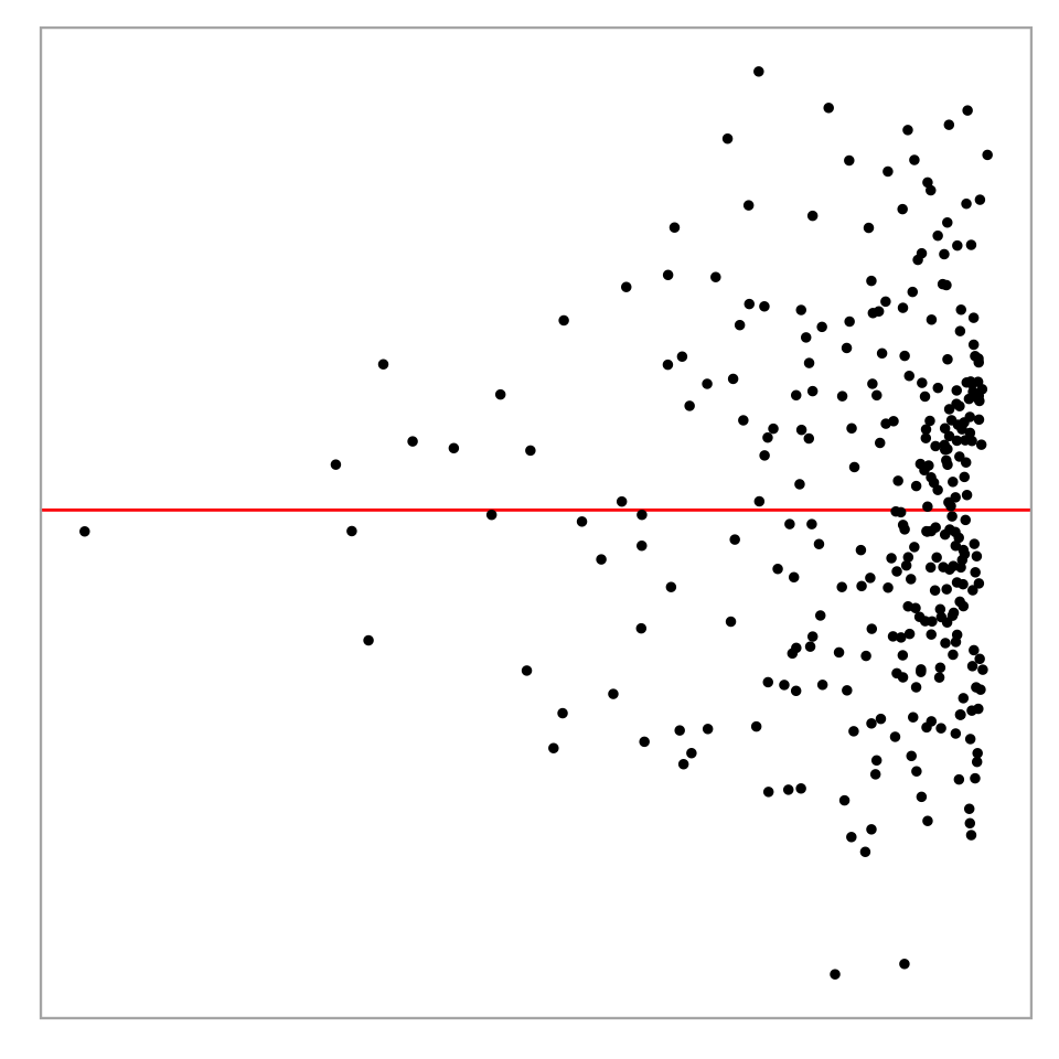 Heteroskedasticity: Vertical spread of the points varies with the fitted values.
